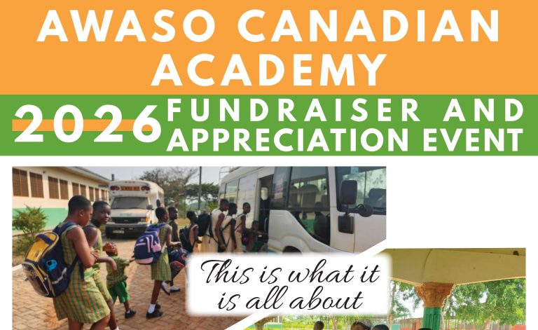 We welcome all volunteers to help support Awaso Canadian Academy Foundation. We need sponsorship of students because it is the main source of revenue for the academy, however, any donation large or small is very much appreciated and 100% goes to the project with no administration fees. Call 780-542-5782 for more information.